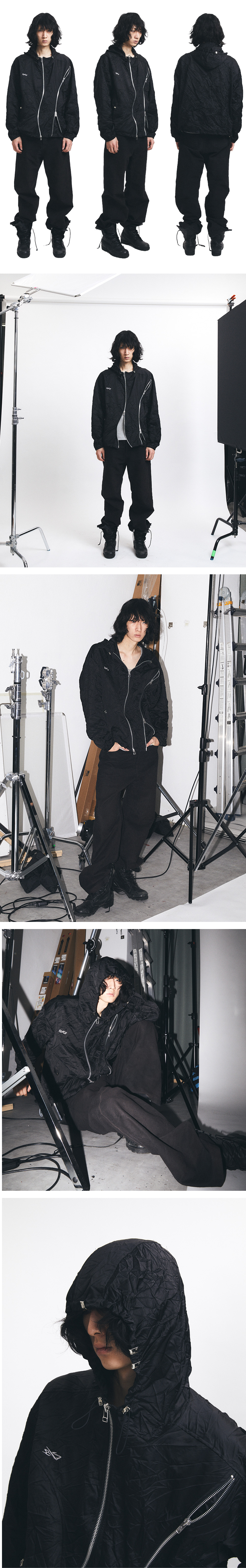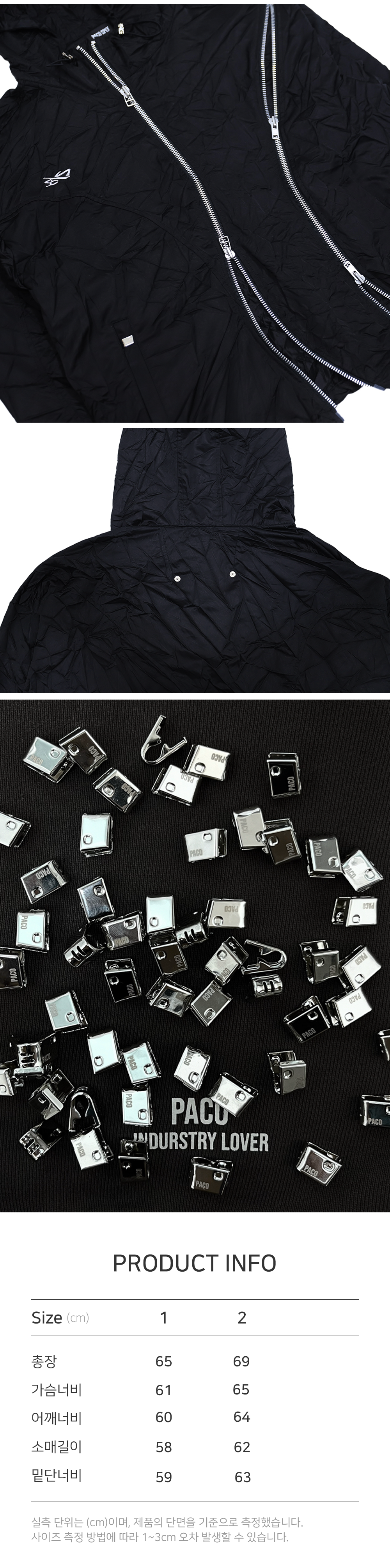 -웨이브 지퍼라인 -PACOSPLY 라이터캡 금속장식 -필드 로고 자수 -크롭 오버사이즈 핏