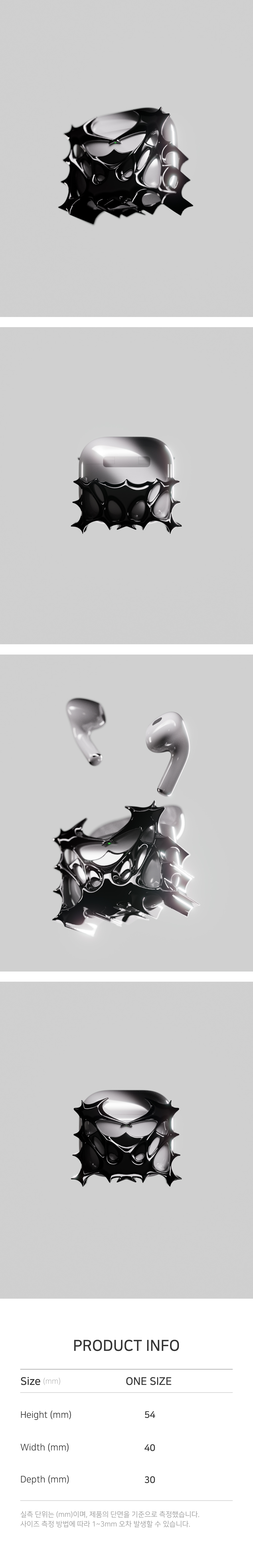 Season .ERA Material Plastic Size Airpods 4 Detail 시그니처 패키지 / Signature Package 입체감 있는 그물 구조 / Three-dimensional Mesh Structure * 제작 공정 상 내부 사각지대에 미도색된 부분이 있을 수 있으며, 이는 교환, 환불의 대상이 아닙니다. * There may be unpainted parts in the inner blind spot during the manufacturing process, which are not subject to exchange or refund.