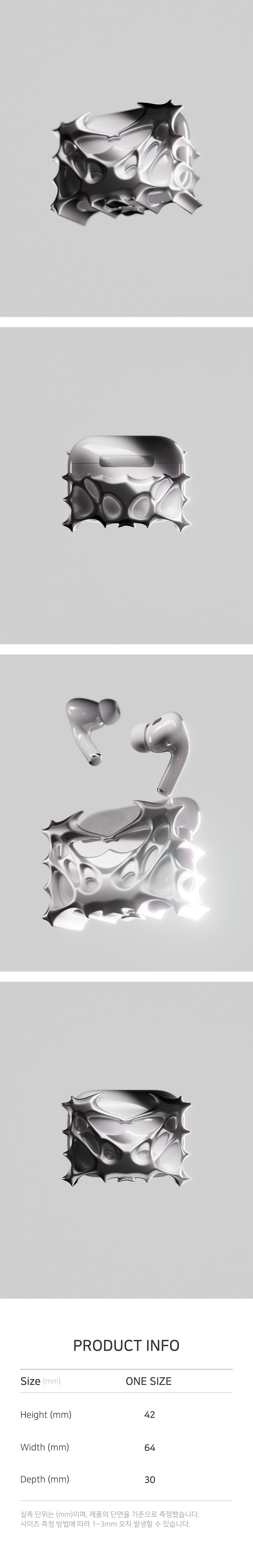 Season .ERA (chromatic) Material Plastic Size Airpods Pro 1 & 2 Detail 시그니처 비닐 패키지 / Signature Vinyl Package 입체감 있는 그물 구조 / Three-dimensional Mesh Structure * 제작 공정 상 내부 사각지대에 미도색된 부분이 있을 수 있으며, 이는 교환, 환불의 대상이 아닙니다. * There may be unpainted parts in the inner blind spot during the manufacturing process, which are not subject to exchange or refund.