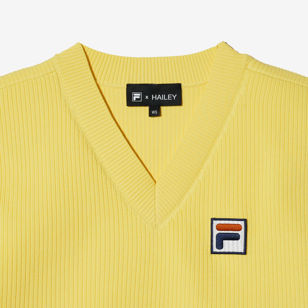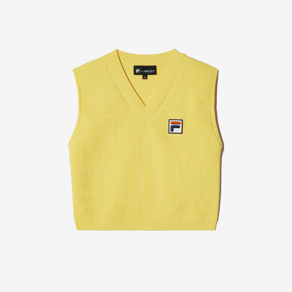 [6% 적립] FILA Hailey Bieber V-Neck Knit Vest Yellow