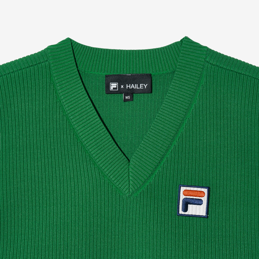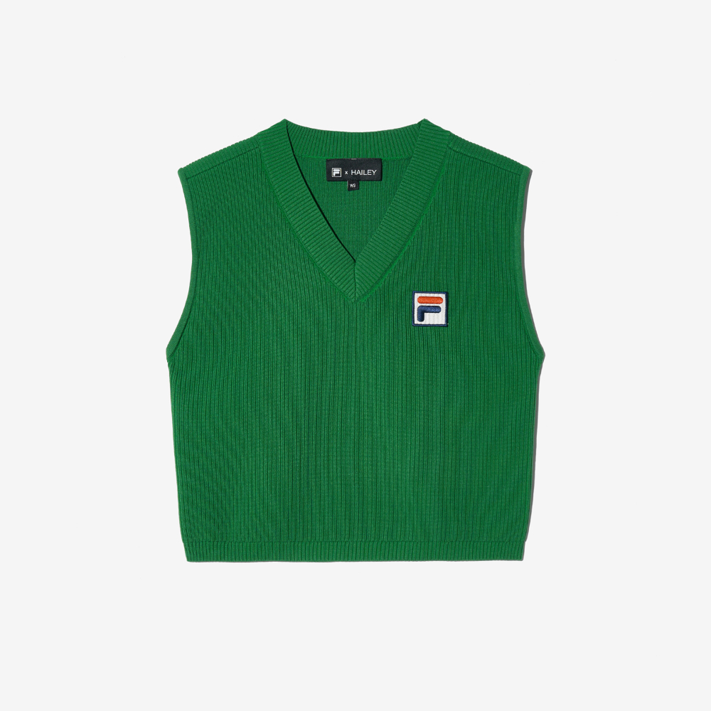 [6% 적립] FILA Hailey Bieber V-Neck Knit Vest Green