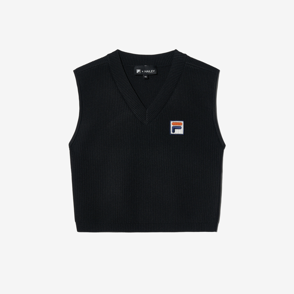 [6% 적립] FILA Hailey Bieber V-Neck Knit Vest Black