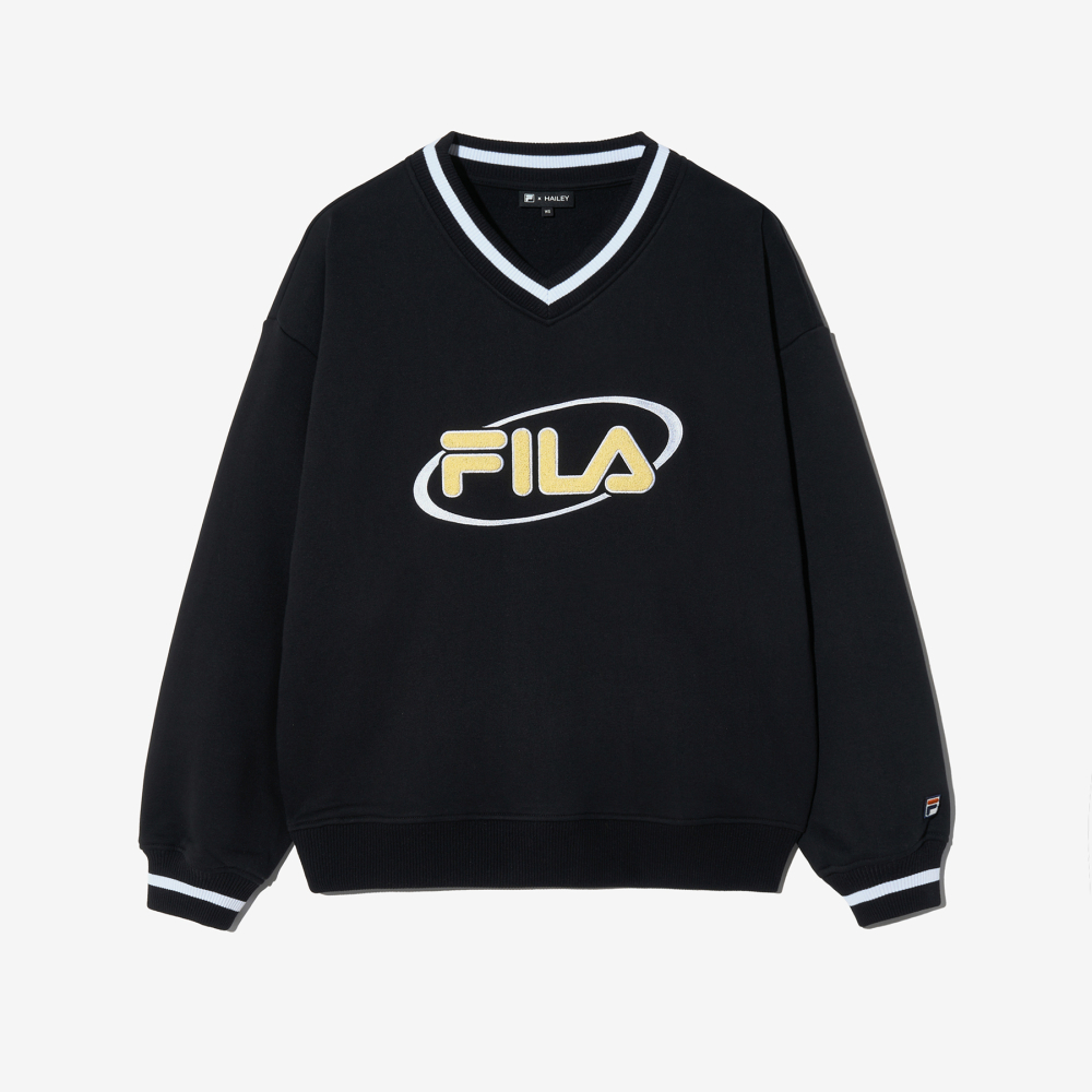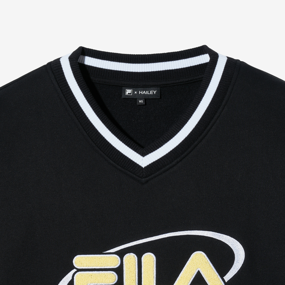 [6% 적립] FILA Hailey Bieber V-Neck Sweatshirt Black