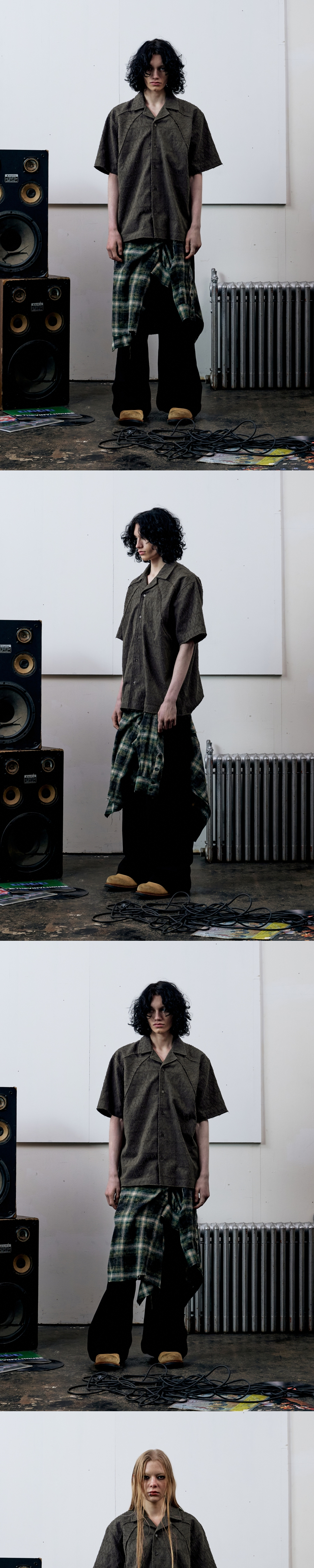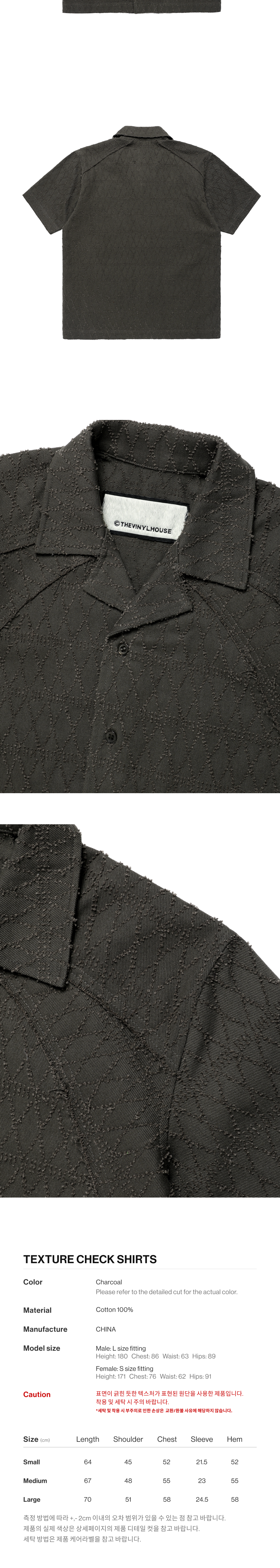 더바이닐하우스 텍스처 체크 셔츠 차콜