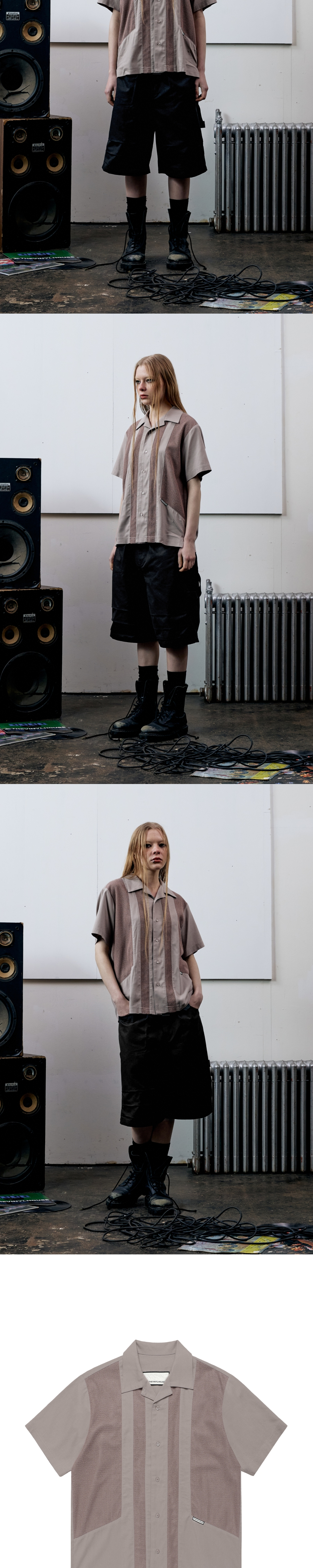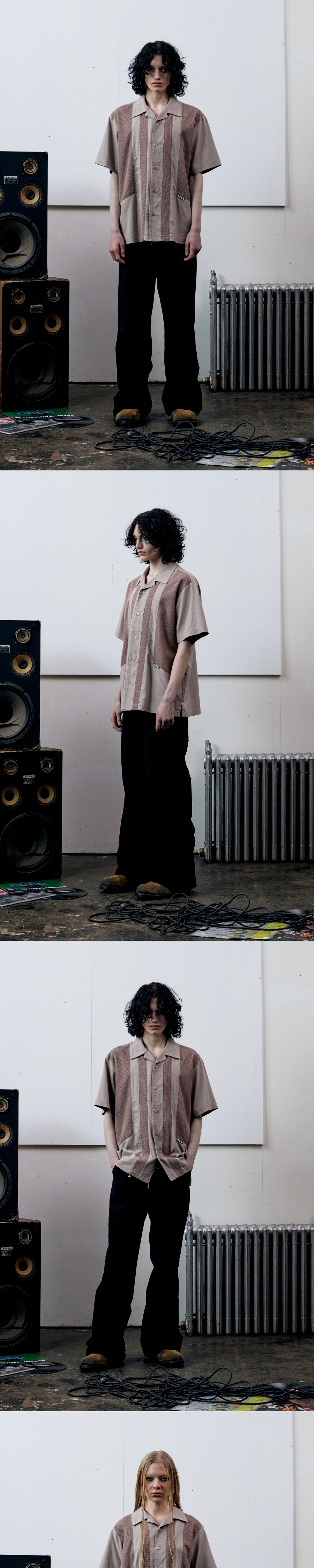 더바이닐하우스 린넨 메쉬 반팔 셔츠 브라운