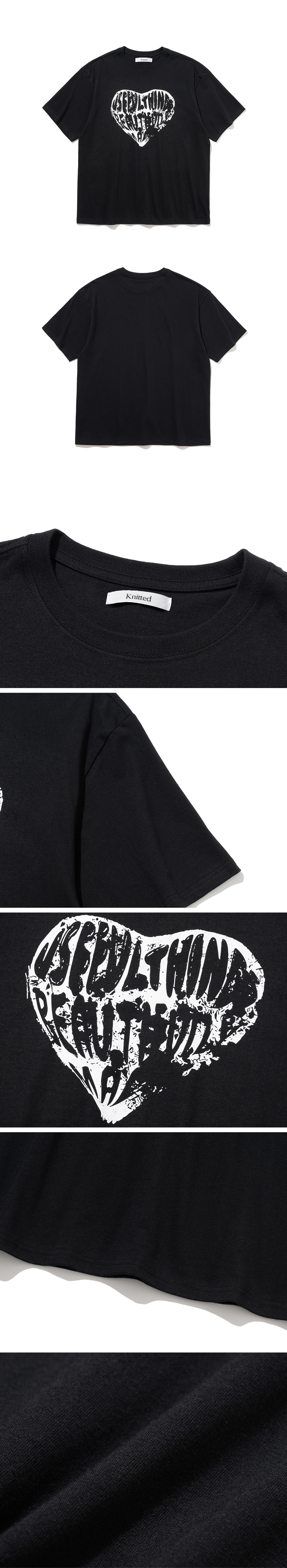 니티드 빈티지 하트 티셔츠 블랙-화이트