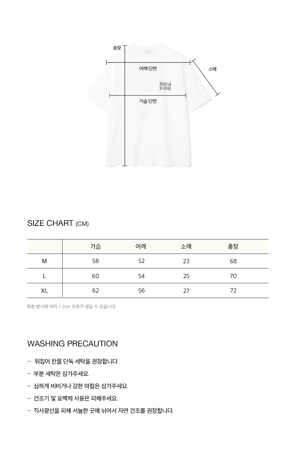측정 방법에 따라 사이즈에 일부 오차가 있을 수 있습니다.