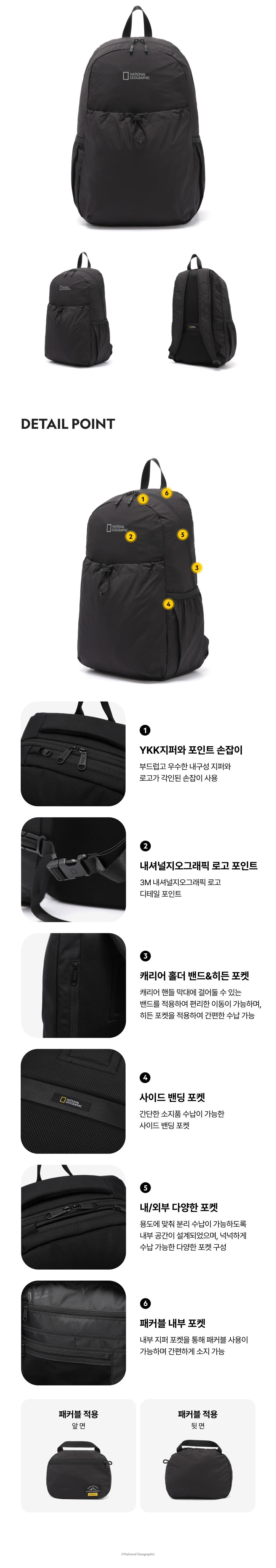 내셔널지오그래픽 패커블 백팩 블랙
