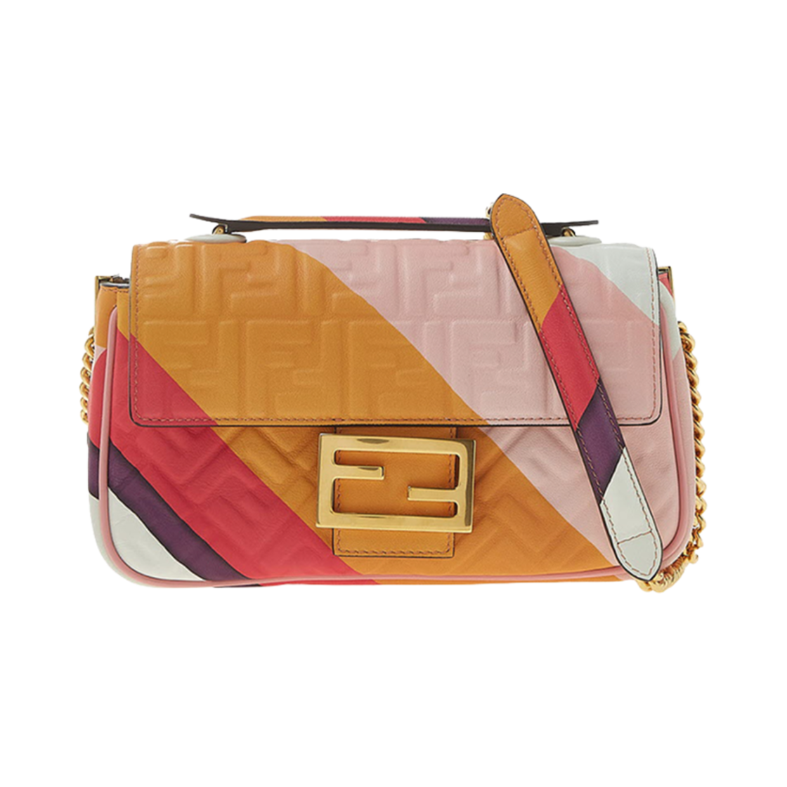펜디 바게트 체인 미디 FF 자카드 패브릭백 멀티컬러