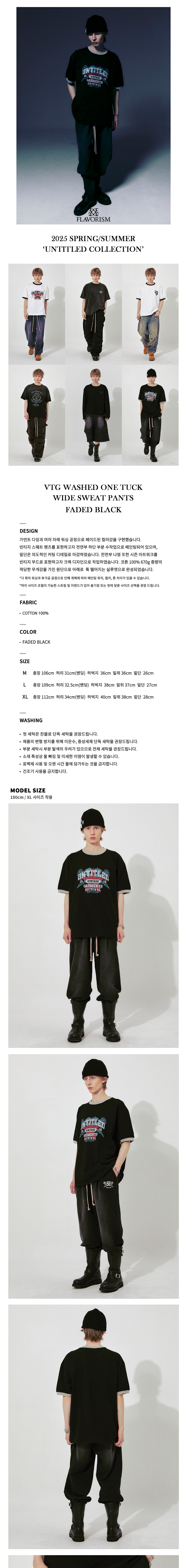 플레이버리즘 빈티지 워시드 원 턱 와이드 스웨트 팬츠 페이디드 블랙