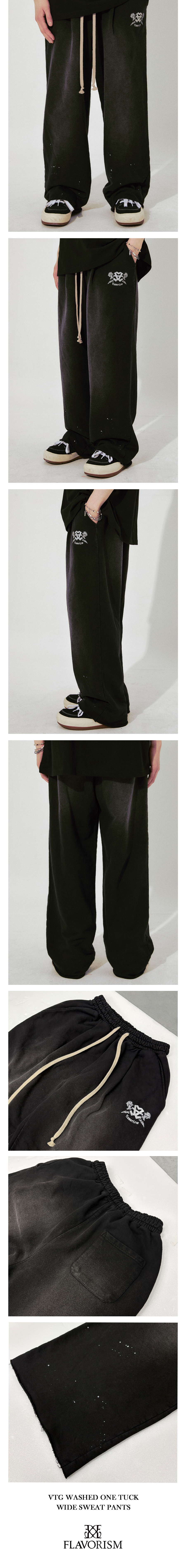 Flavorism VTG Washed One Tuck Wide Sweat Pants Faded Black