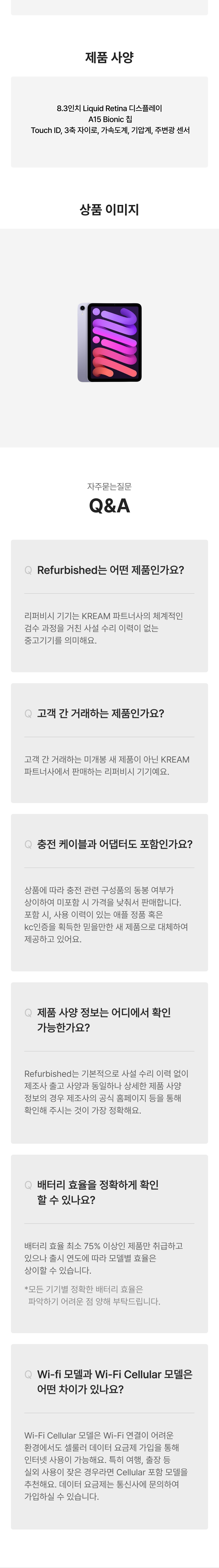 ![[A등급] 리퍼비시 아이패드 미니 6세대 wifi A15 Bionic 64GB 퍼플([A등급] Refurbished iPad mini Gen-6 wifi A15 Bionic 64GB Purple) - 1](https://kream-phinf.pstatic.net/MjAyNTAzMTRfMjYw/MDAxNzQxOTI2MjgzODAw.lurFCTNx25OvcIFfoBMEpHe5Whwel9FwMwjvx_hPY50g.TIyAE-YOwPkAi0WZ9sqmeBG8mGWoX0K1thgt0tPtjcQg.PNG/p_830b12743a4e4e90ab6f3516b08dc286.png)