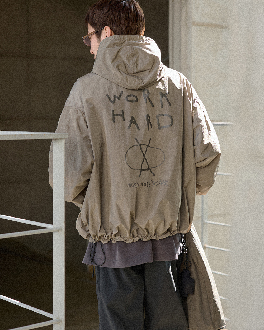 이나피스퀘어의 아트웍이 담긴 경량 파카 · 넉넉한 느낌의 루즈한 실루엣. · 가볍고 부드러운 나일론 원단 사용. · 투웨이 지퍼와 스냅 버튼이 달려있는 앞여밈 사양. · 스냅 여밈의 사이드포켓 사양. · 작은 소지품을 보관할 수 있는 소매 지퍼 포켓. · 벨크로로 사이즈 조절이 가능한 소매 커프스 사양. · 바람을 막아주며, 실루엣 조절이 가능한 밑단 스트링 사양. · 이나피스퀘어 아트웍 그래픽 프린트.