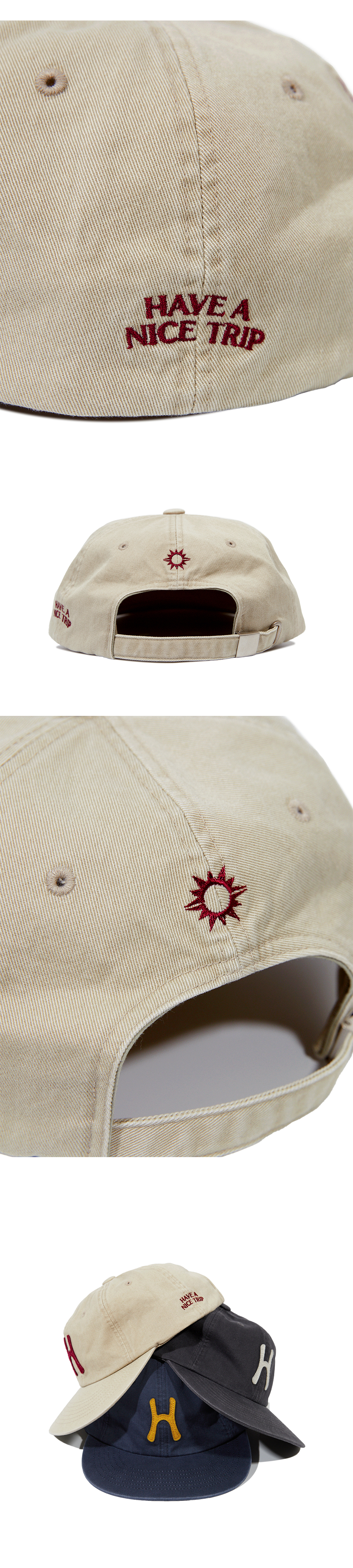 헬로선라이즈 H 로고 그래픽이 아플리케 자수로 들어간 6패널 캡입니다. - 기존 울 소재에서 코튼 버전으로 변형 - Relaxed Fit 으로 기존 6패널 캡보다 여유로운 착용감 - 옆면 Have a nice trip 포인트 자수 처리 - 뒷면 Hello Sunrise 심볼 자수 처리 * 모자의 챙을 개인적인 취향에 따라 원하시는 각도로 구부려 착용하시길 권장 드립니다. * 앞판에 생기는 주름은 워싱 과정상의 자연스러운 현상으로 반품사유가 되지 않습니다. * 앞판 H로고에 자연스러운 이염은 빈티지한 워싱을 의도한 것으로 반품사유가 되지 않습니다. * Cotton 100% Made in Korea