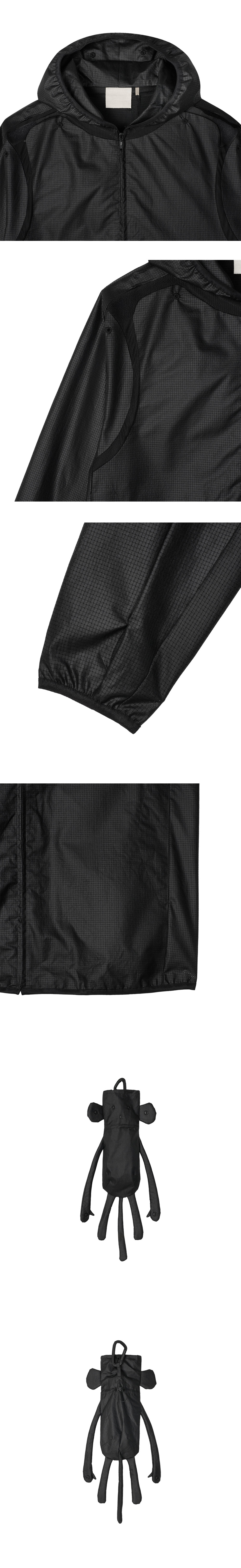휴대가 가능한 지안 예의 베이직 유닛 05 블랙입니다. - 레귤러 핏 - 후드에 적용된 벤틸레이션 홀 - 경량 나일론 소재 - 패커블 백 포함