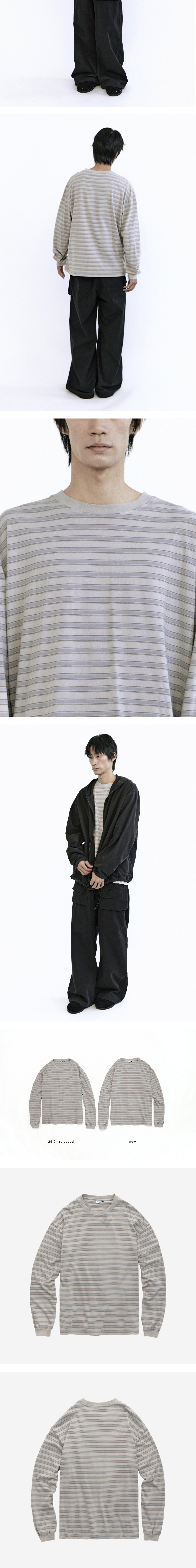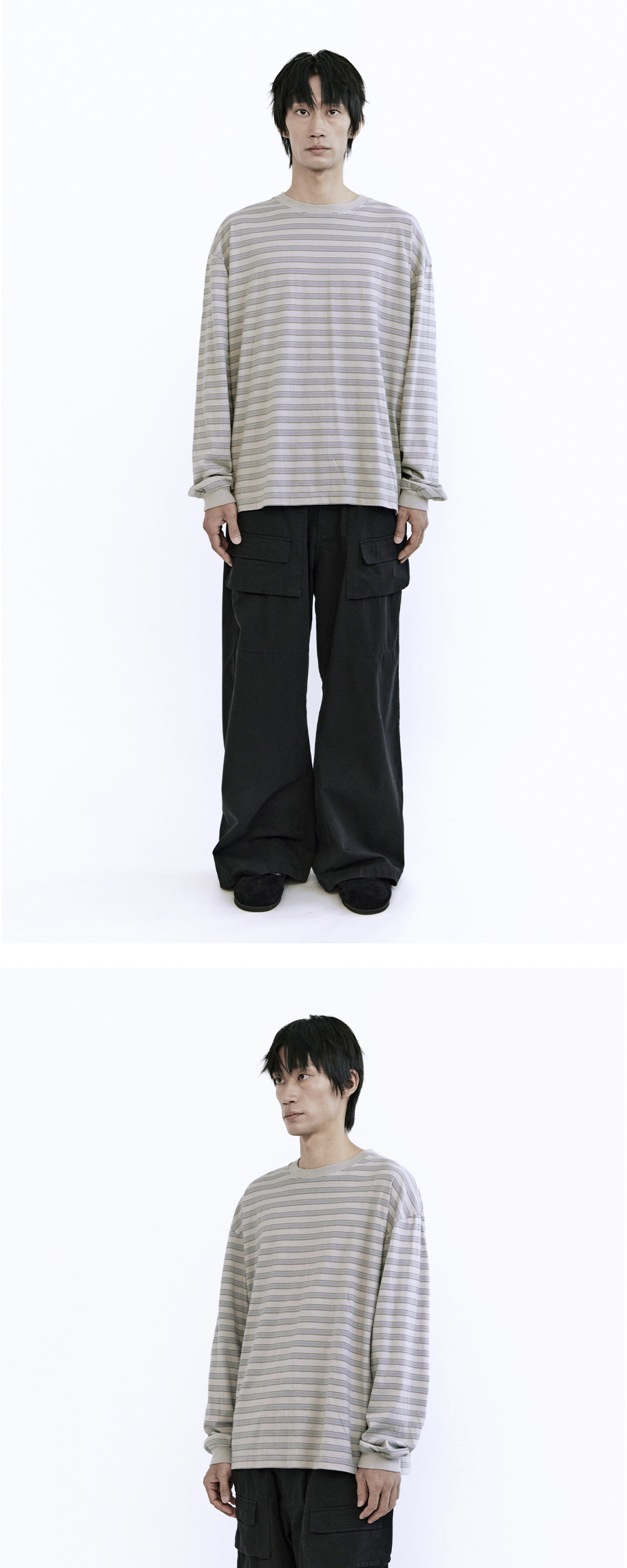 striped long sleeve - ecru, blue, charcoal - 오리지널 배열 디자인 후 별도 편직한 코튼 소재 - 완성 후 추가 워싱 및 다잉 적용하여 자연스럽고 부드러운 색감 - round neck sleeve 베이스로 실루엣, 소재를 한층 더 발전시킨 패턴 - 넉넉한 실루엣감 - 디자이너가 몇년 입은 티셔츠의 후들한 컨디션 재현 - 적절한 RIB 두께 *모델: 170 중반, 마른 체형 / 3사이즈 착용 *디자인 의도에 맞게 착용하시려면 기존 폴리테루 제품과 동일한 사이즈를 선택하시는 것을 권장드립니다. *일반 체형 기준 - 170cm 초반 이하 2사이즈 권장 - 170cm 중반 3사이즈 권장 - 170cm 후반~180cm 초반 4사이즈 권장