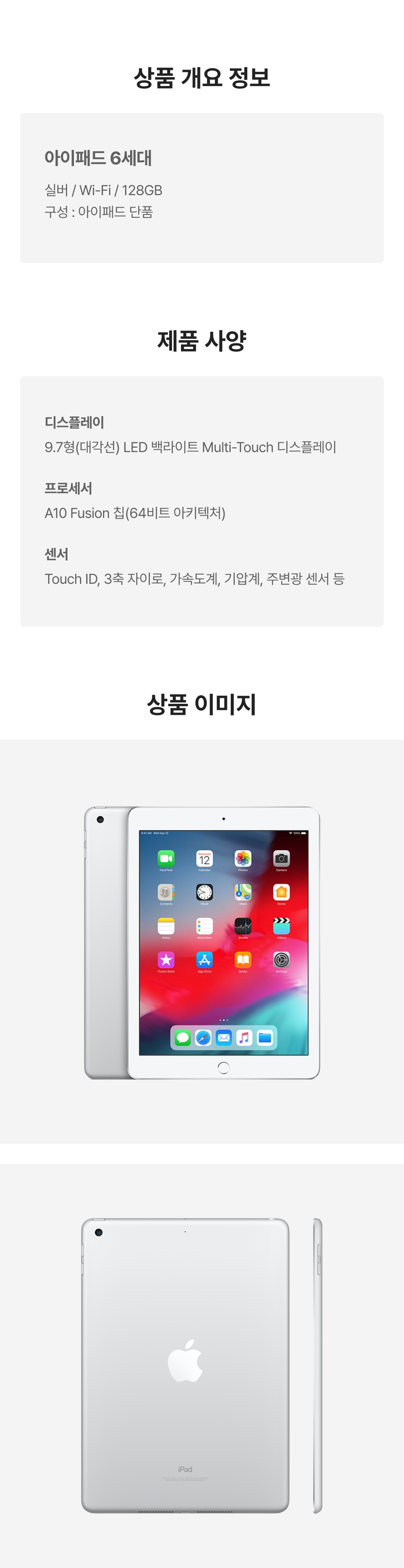 [B등급] 리퍼비시 아이패드 6세대 wifi A10 Fusion 128기가 실버
