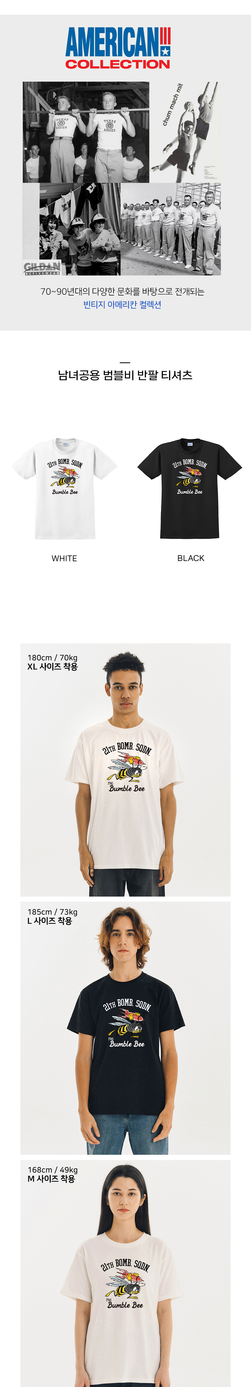 Gildan X 아메리칸 컬렉션 범블비 티셔츠 화이트