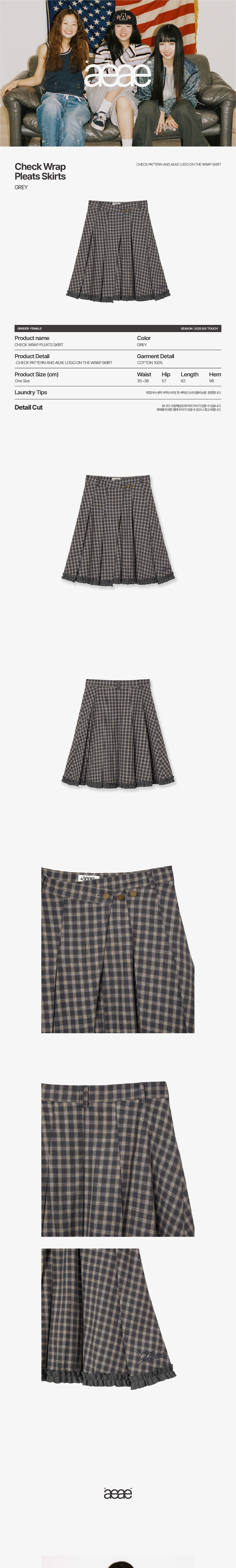 에이이에이이 체크 랩 플리츠 스커트 그레이