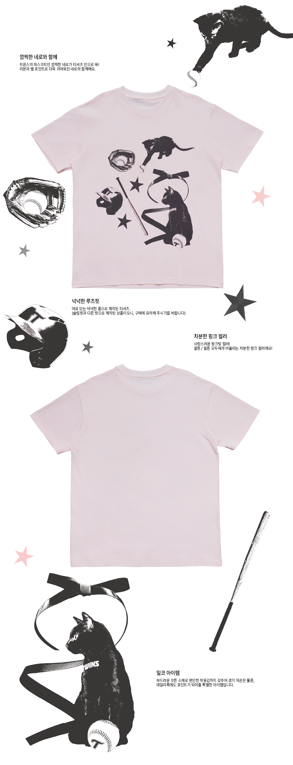 트윈스 x 블루밍테일 네로 티셔츠 루즈핏 핑크