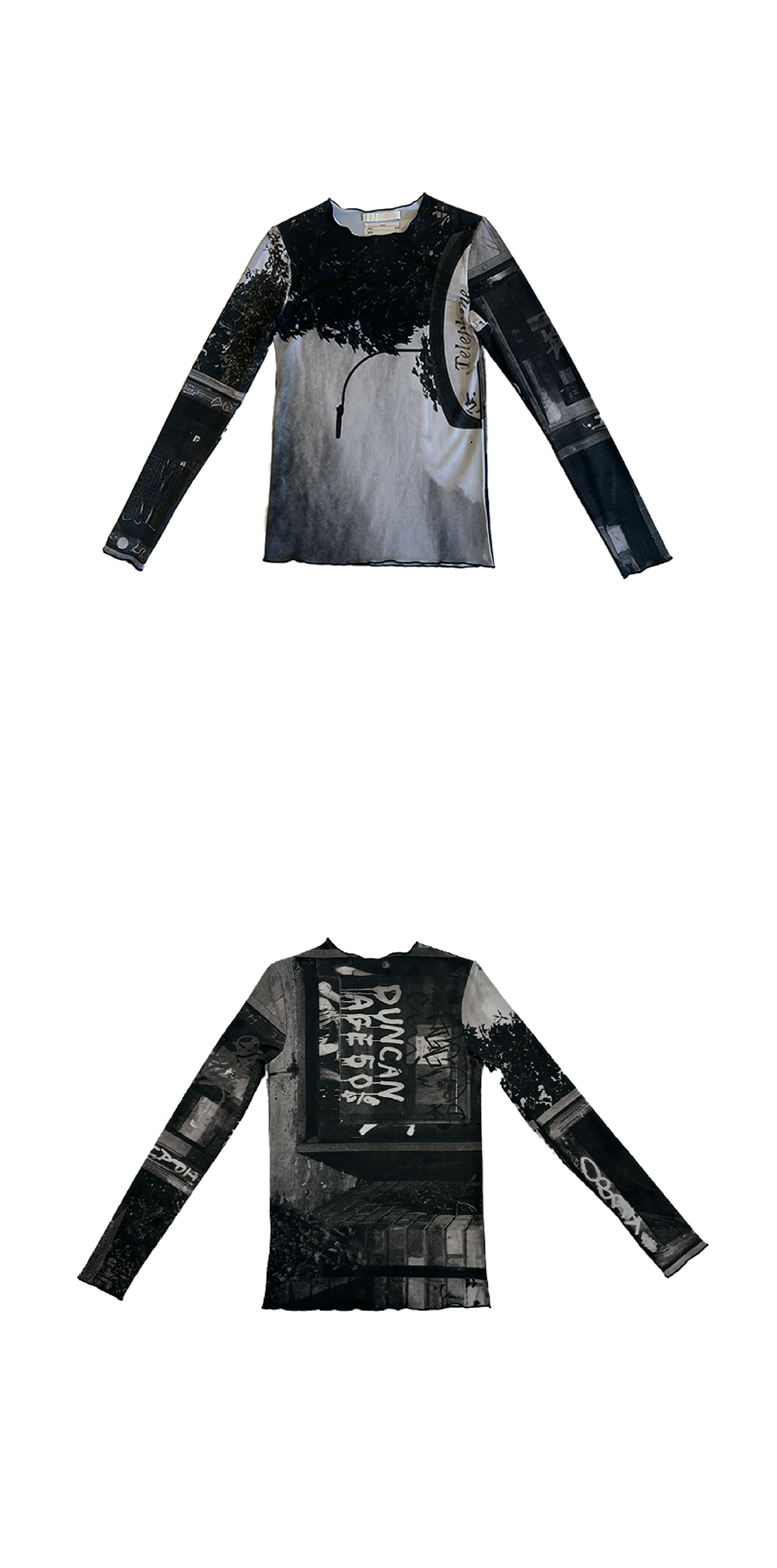 DETAIL Photo printed throughout Soft-touched cooling fabric Finished with interlock stitching 포토 프린팅 부드러운 촉감의 쿨링 원단 인타로크 스티치 마감 COMPOSITION Polyester 98%, Span 2% SIZE MEASUREMENT - Size OS: Length 55cm_Chest 36cm_ Shoulder 30cm_Sleeve 57cm Made in South Korea Washing instructions Dry clean recommended Hand wash cold Wash separately Do not bleach