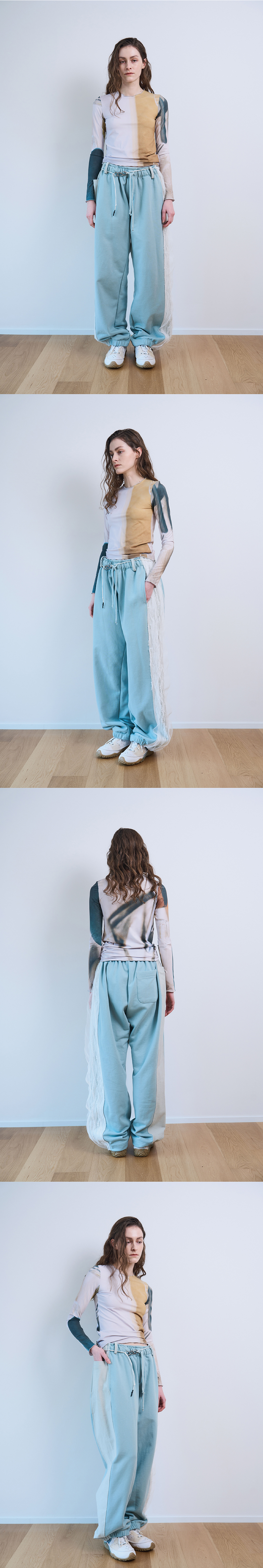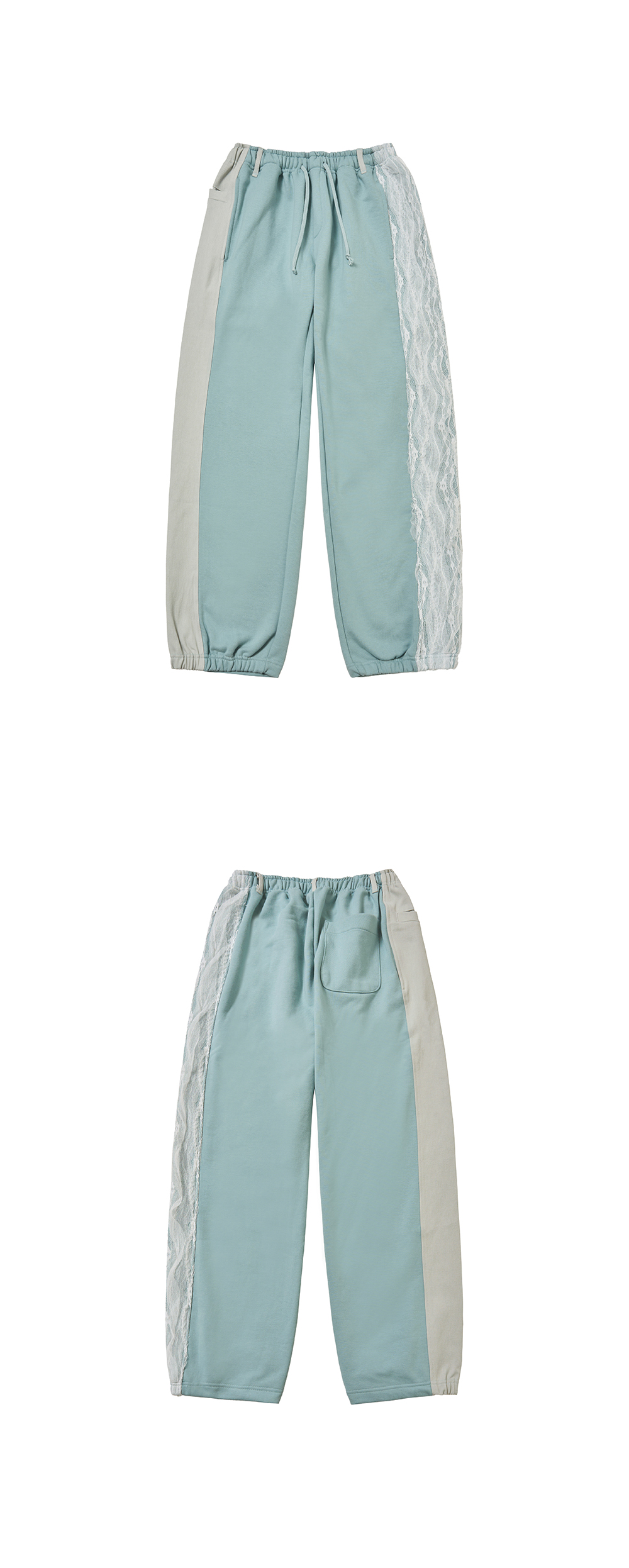 DETAIL Wide fit Paneled construction Lace panel at left side 4 pocket styling Drawstring at elasticated waist band 와이드핏 사이드 코튼 패널 왼쪽에 레이스 패널 웨이스트 스트링 벨트고리 디테일 사이드포켓, 백포켓 등 4개의 포켓 COMPOSITION Cotton 65%, Polyester 45% Panel: Cotton 100% SIZE MEASUREMENT - Size S: Length 101cm_Waist 34cm (Elasticated)_Rise 32cm_Thigh 33cm_Hem 22cm - Size M: Length 106cm_Waist 38cm (Elasticated)_Rise 34cm_Thigh 34cm_Hem 23cm Made in S o u t h Korea Washing instructions Dry clean recommended Hand wash cold Wash separately Do not bleach