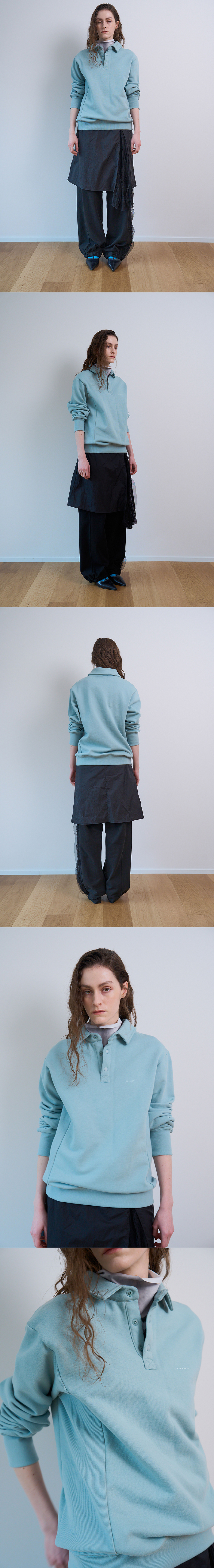 DETAIL Standard fit sweat polo Rib panel at sides Three-snaps placket Contact logo at front 스탠다드핏의 카라 맨투맨 사이드 립 원단 패널 스냅 버튼 앞판에 컨택 자수로고 COMPOSITION Cotton 65%, Polyester 45% SIZE MEASUREMENT - Size S: Length 60cm_Chest 52cm_Shoulder 49cm Sleeve 66cm - Size M : Length 65cm_Chest 57cm_Shoulder 50cm_Sleeve 68cm Made in South Korea Washing instructions Dry clean recommended Hand wash cold Wash separately