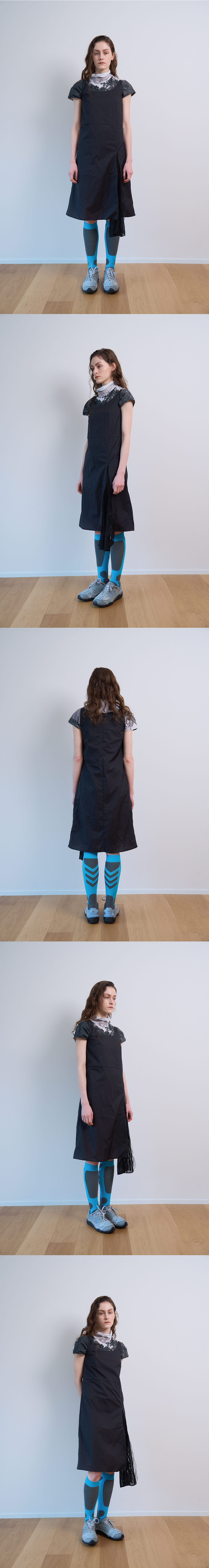 DETAIL Light weight sleeveless long nylon dress. Zip expansion lace panel at front Water-repellent. 경량 나일론 소재의 슬리브리스 롱 드레스 왼쪽 지퍼로 레이스 디테일 변경 가능 일상 생활 방수 원단 COMPOSITION Nylon 100% SIZE MEASUREMENT - Size OS: Length 92cm_Chest 43cm_Shoulder 32 cm_Hem 52cm Made in South Korea Washing instructions Dry clean recommended Hand wash cold Wash separately Do not bleach