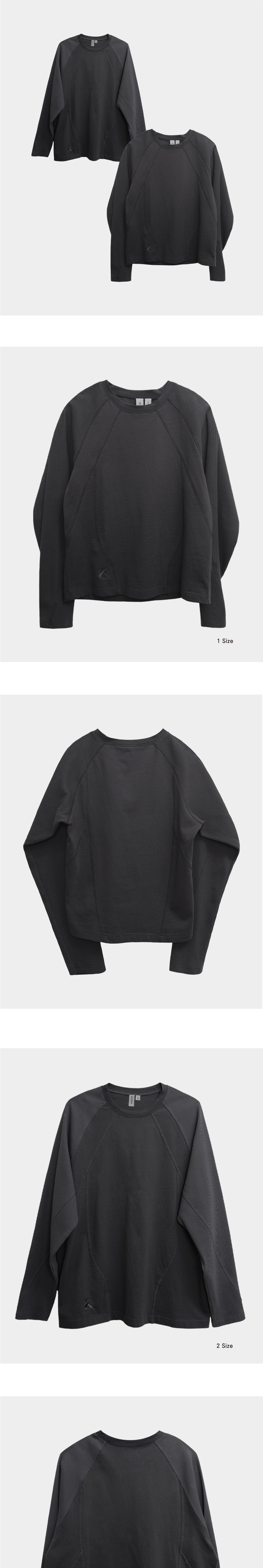 리오므 배색 절개 롱슬리브 티 차콜