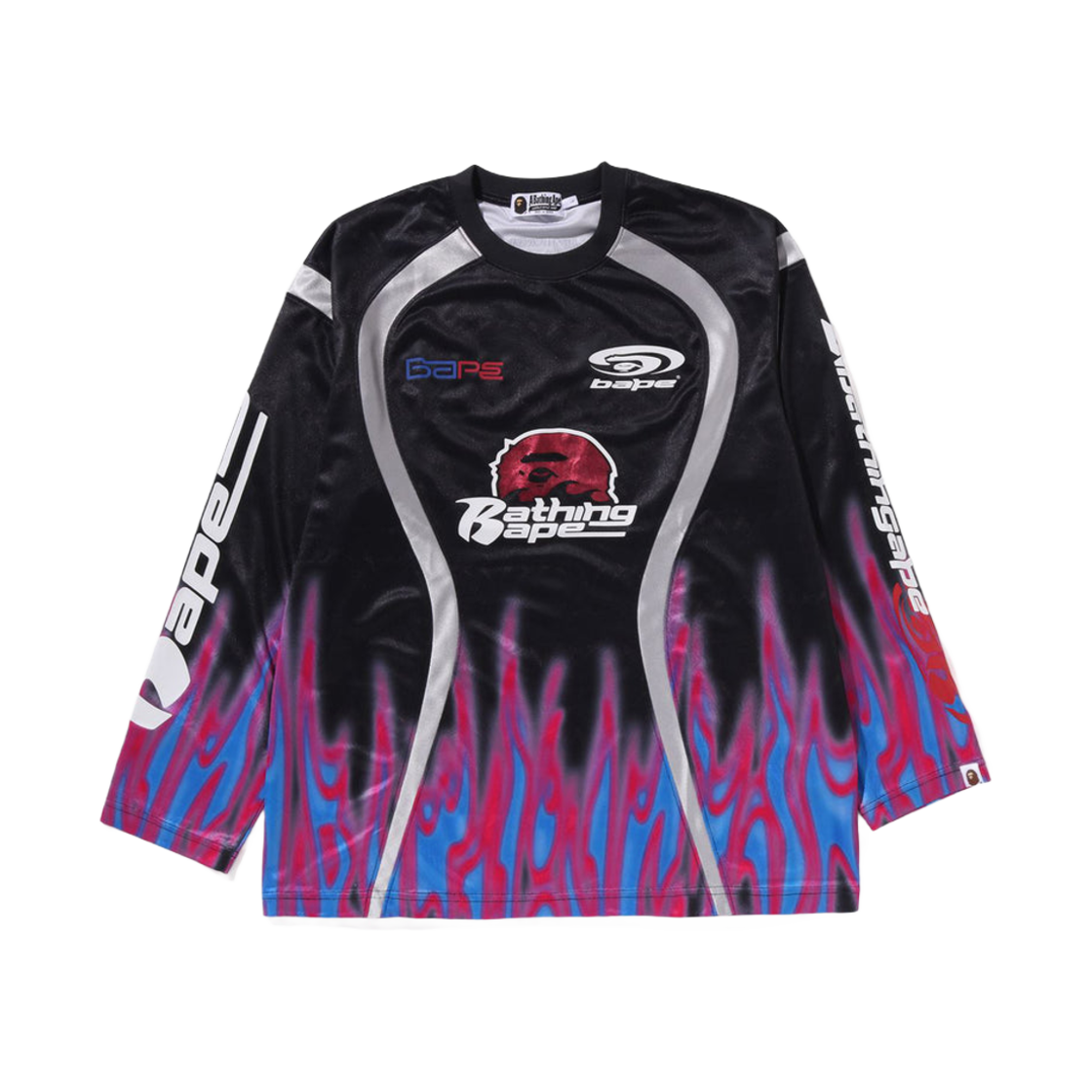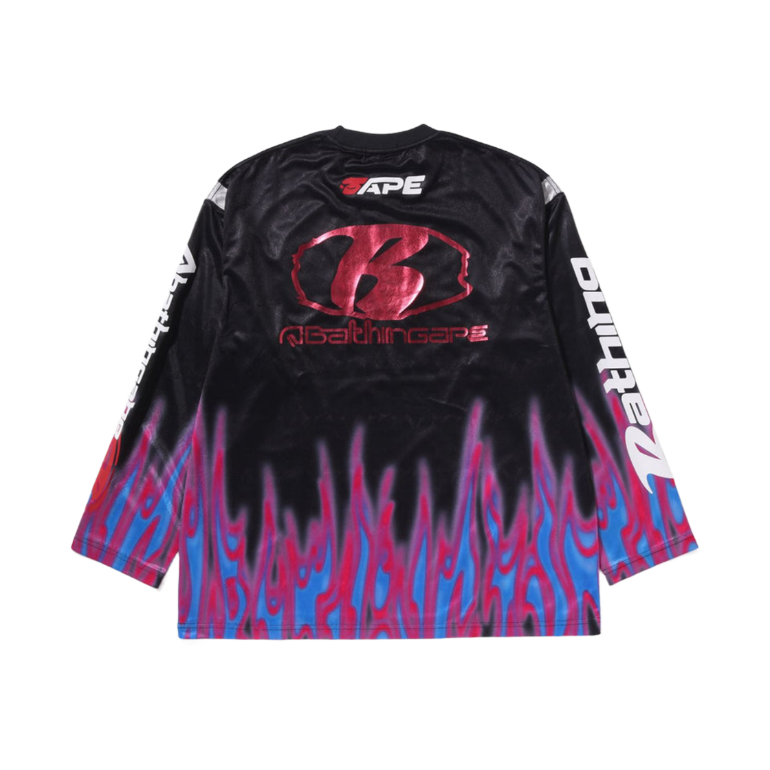 BAPE Flame Pattern Multilogo Relaxed Fit Football Jersey Black