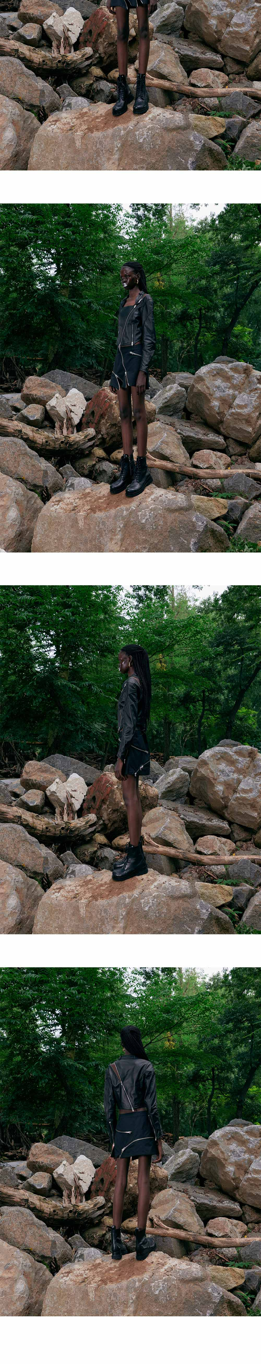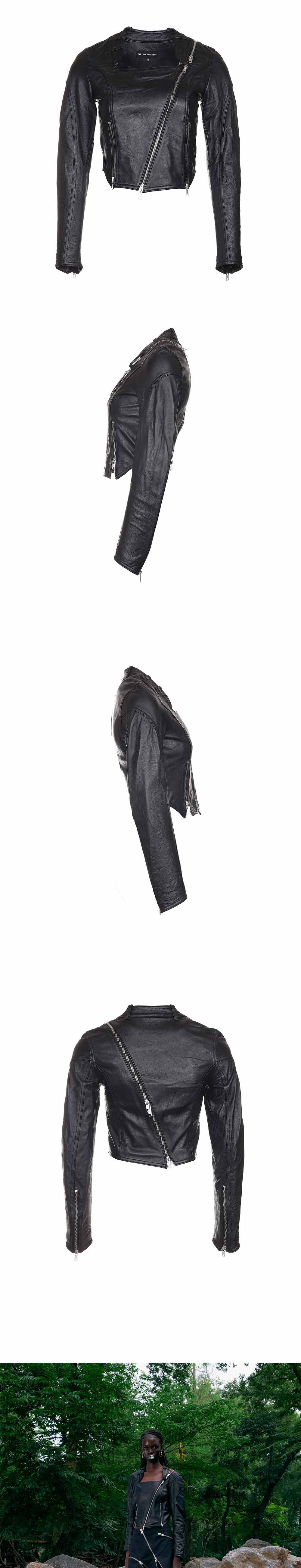 써저리 타이트 핏 우먼 레더 자켓 블랙