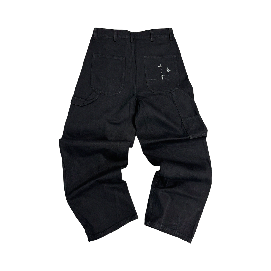 Aoiro Fake Stud Cutted Double Knee Pants Denim Black