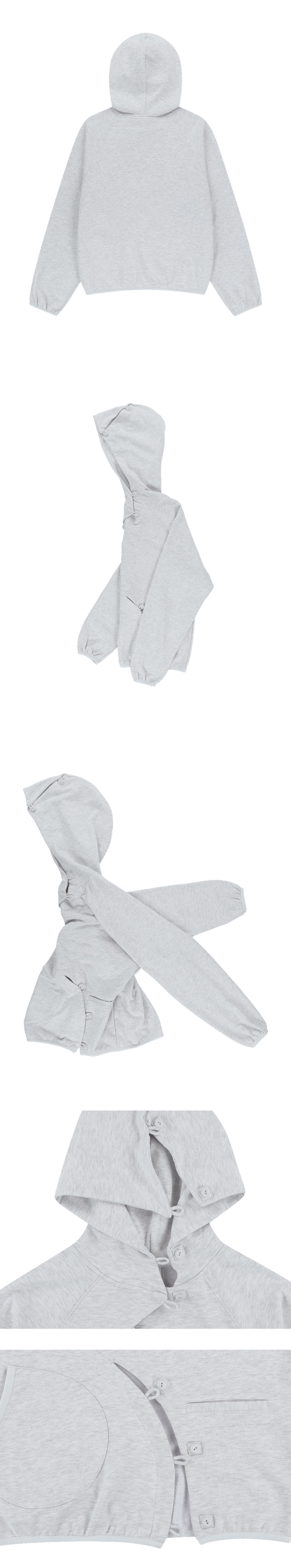 - 후드부터 몸판까지 이어지는 곡선 여밈 - 오버핏의 후드와 앞판 비대칭 포켓 디테일 - 몸판 및 소매 밑단 접밴드 마감