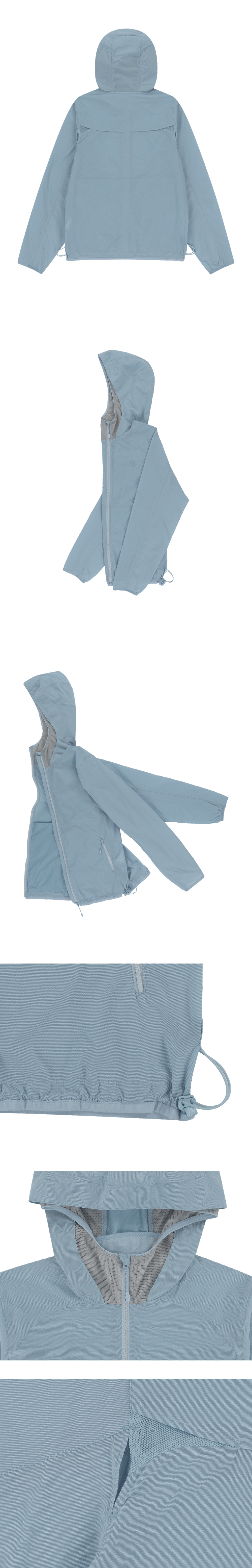 -UV 차단되는 원단 사용 -암홀 트임과 뒷판 벤틸레이션으로 통기성에 용이 -후드 메쉬 소재 레이어드 디테일