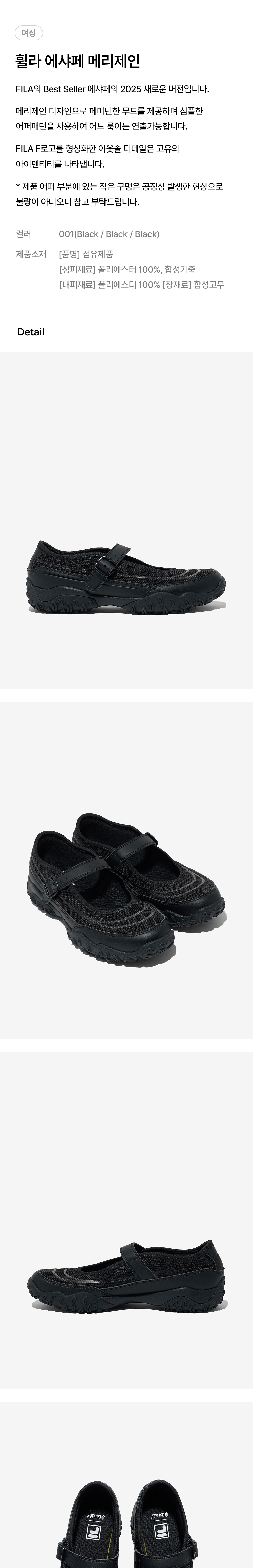 FILA의 Best Seller 에샤페의 2025 새로운 버전입니다.메리제인 디자인으로 페미닌한 무드를 제공하며 심플한 어퍼패턴을 사용하여 어느 룩이든 연출가능합니다. FILA F로고를 형상화한 아웃솔 디테일은 고유의 아이덴티티를 나타냅니다.