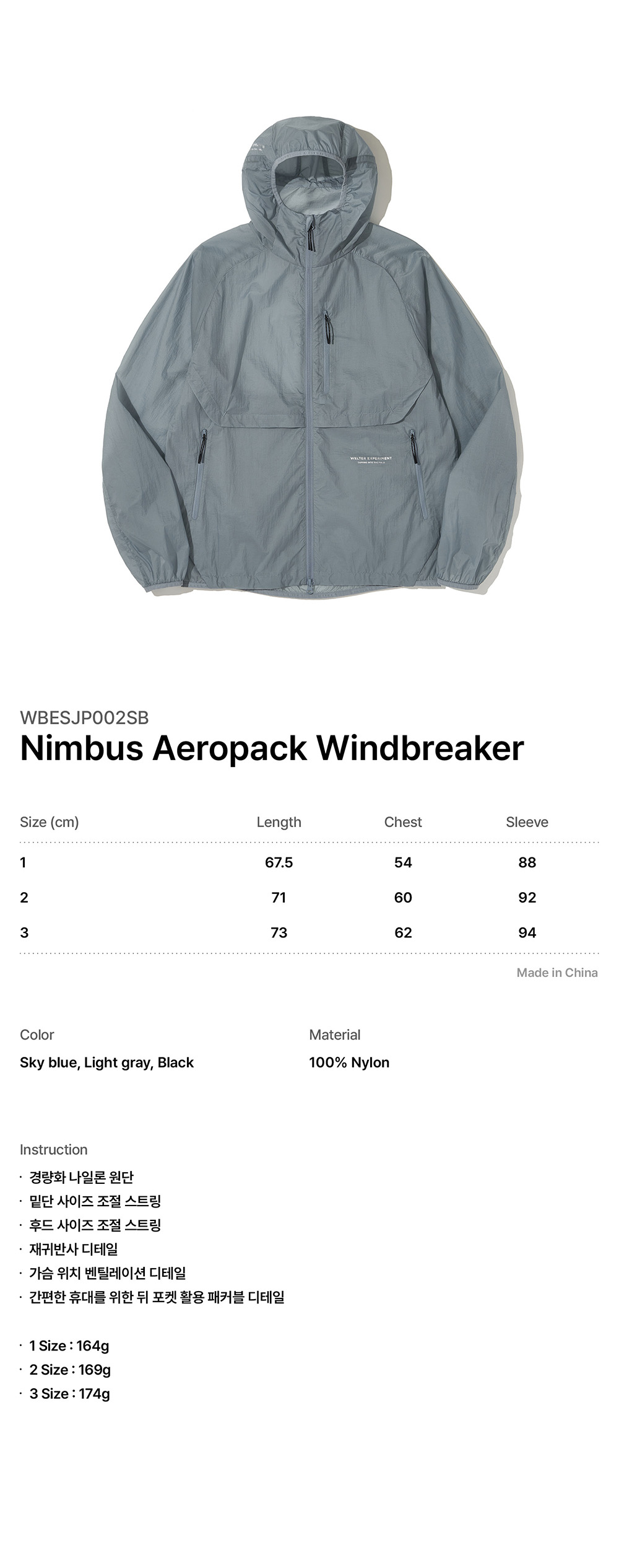 웰터 익스페리먼트 님버스 에어로팩 윈드브레이커 스카이 블루