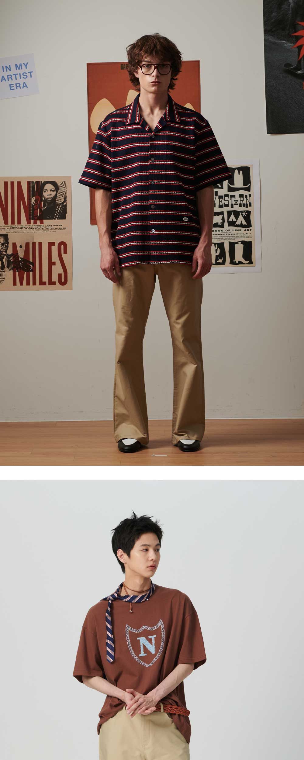 엔 아카이브 아카이브 플레어 핏 수퍼 파인 치노 팬츠 베이지