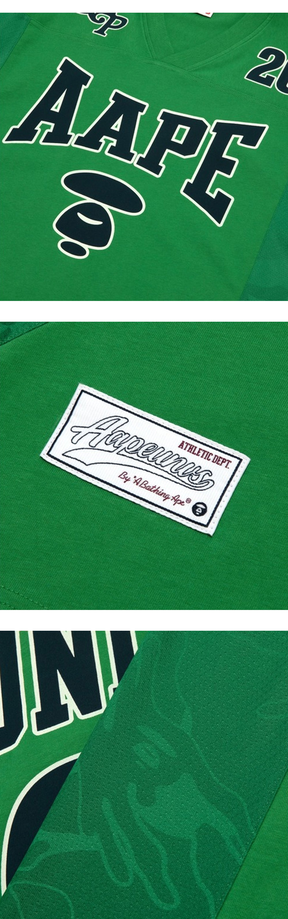스포티한 무드가 매력적인 에이프의 팬시 메인 티 다크 그린입니다. - 유니폼 디자인 - 루즈한 실루엣 - 전, 후면 로고 디자인 포인트