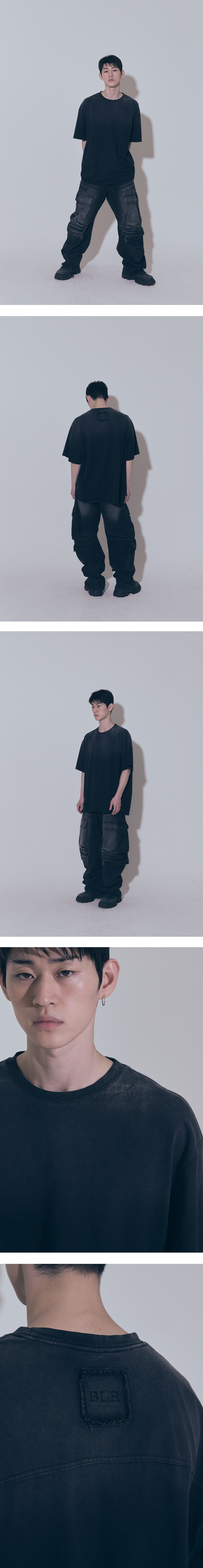 BLR Raw Cut Square Patched Washing T-shrits (Over-fit)