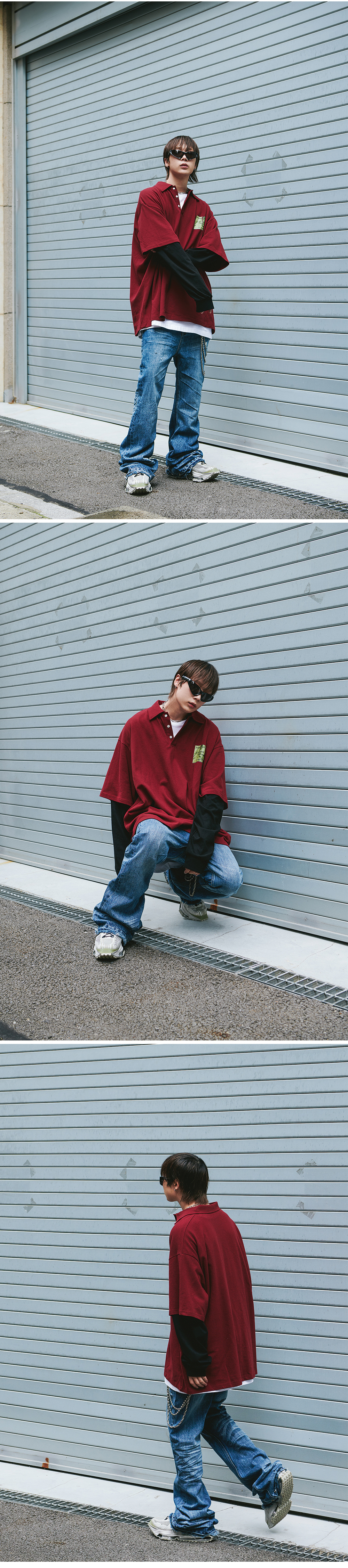 로어링라드 레이어드 피케이 롱 슬리브 버건디