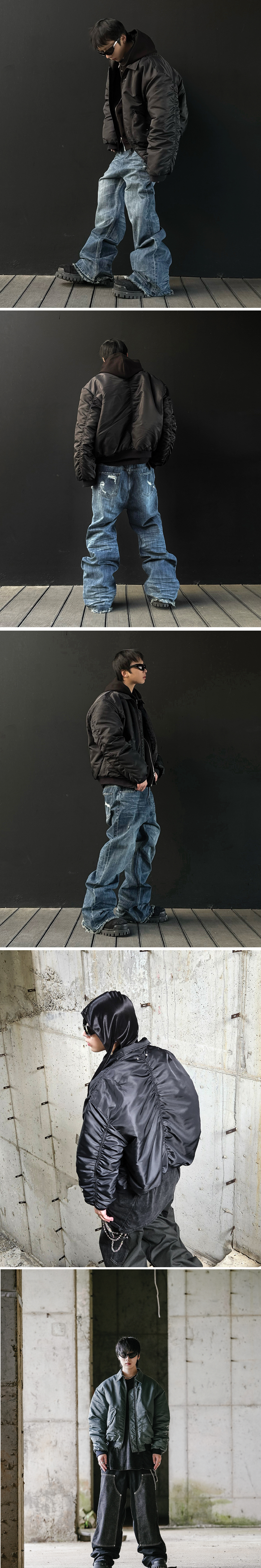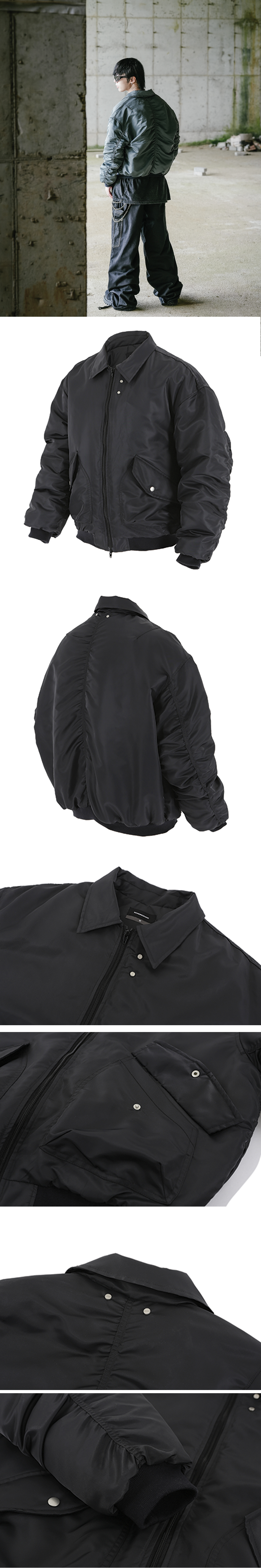 Fabric : 100% NYLON - 오버 핏 - 크롭 기장 - 입체 포켓 디테일 - 4oz 하스 본딩 충전제 - 소매, 와끼, 후면 셔링 봉제 - 시그니쳐 리벳 포인트 - 카라 디테일 - 스냅 YKK 社 - 2way Zipper • 제조국 : 대한민국 • 세탁 방법 : 드라이 크리닝 Size Guide (단위 CM) M : 어깨 59, 가슴 65, 총장 65, 소매 62 L : 어꺠 61, 가슴 68, 총장 67, 소매 63