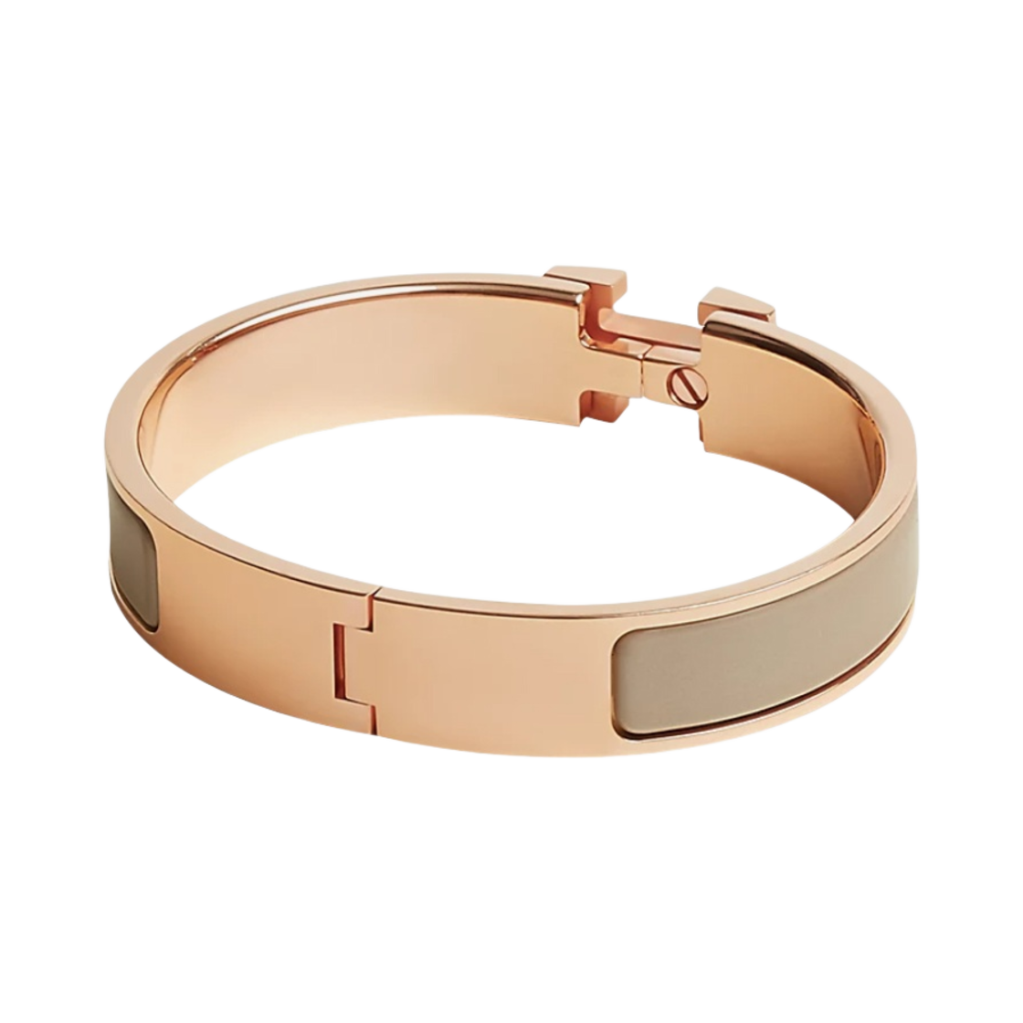 (W) Hermes Clic H Bracelet Rose Gold & Marron Glace