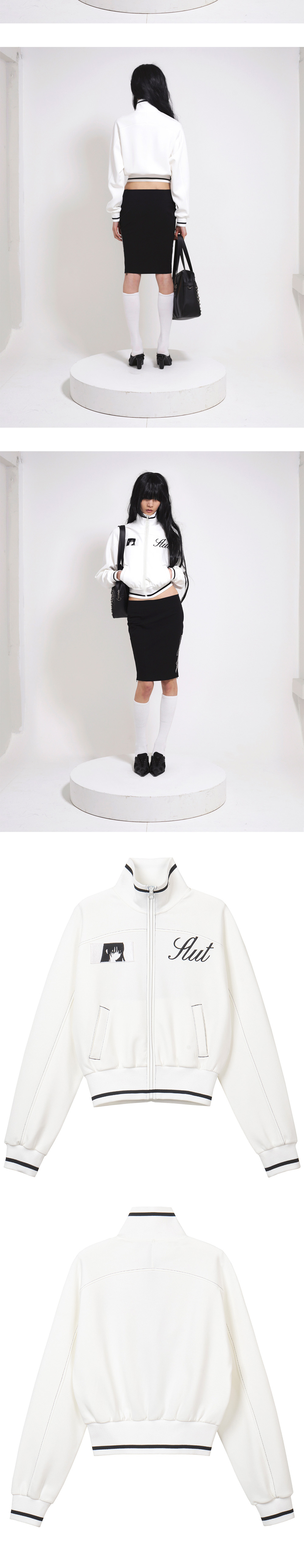 그래픽 자수패치 디테일 레터링 자수 디테일 배색 스티치 넥, 소매 포인트 컬러의 배색 시보리 YKK 지퍼 부드럽고 신축성 있는 쿠션지 원단 Size(Length/Shoulder/Chest/Sleeve) 1 : 53cm/35cm/49.5cm/68cm 2 : 53.5m/35.5cm/52.5cm/68.5cm 3 : 54m/36cm/55.5cm/69cm Tencel 50% Cotton 45% Span 5%