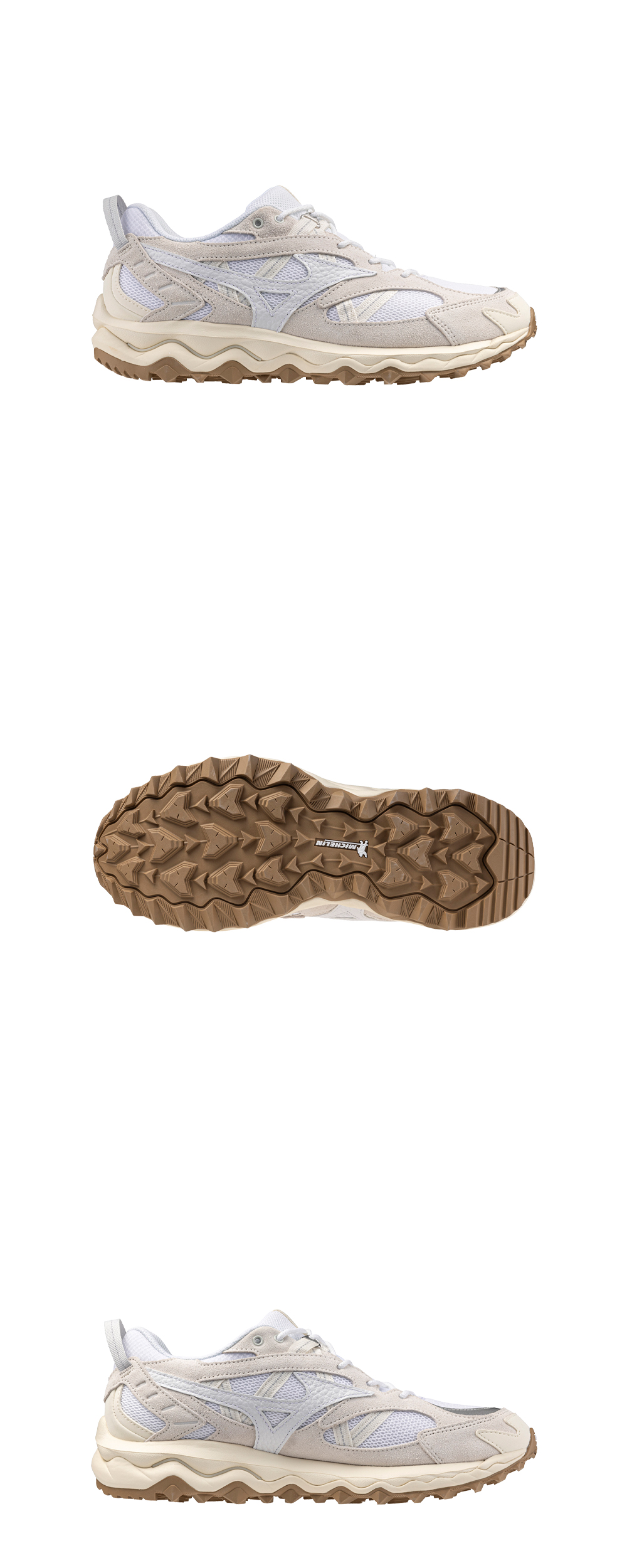 미즈노 트레일화의 큰 특징인 "Michelin Sole"을 활용하여 견고한 내구성 및 아이코닉한 아웃솔 형태가 특징인 슈즈입니다.
