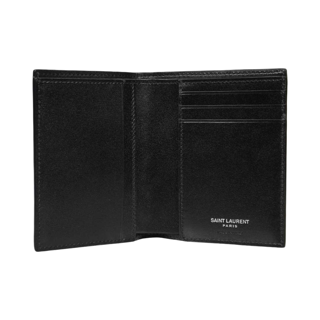Saint Laurent Silver Monogram Credit Card Wallet in Smooth Leather Black