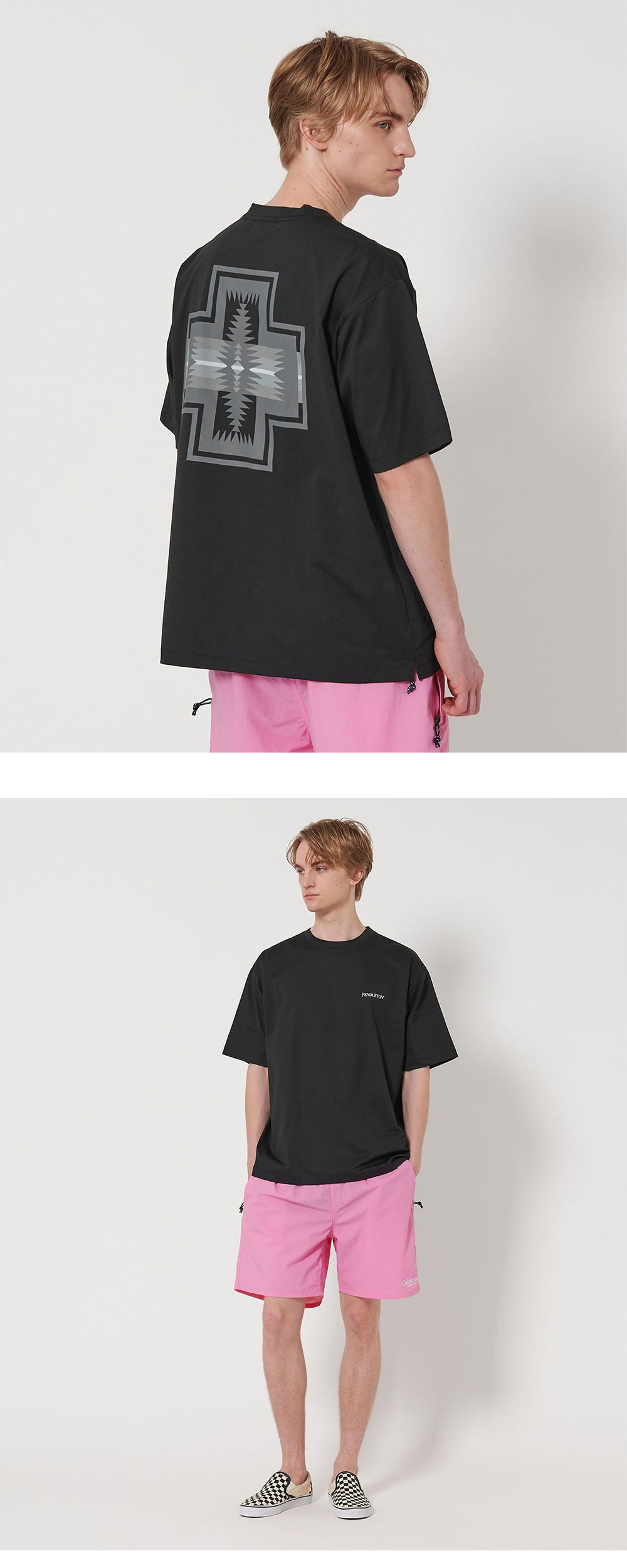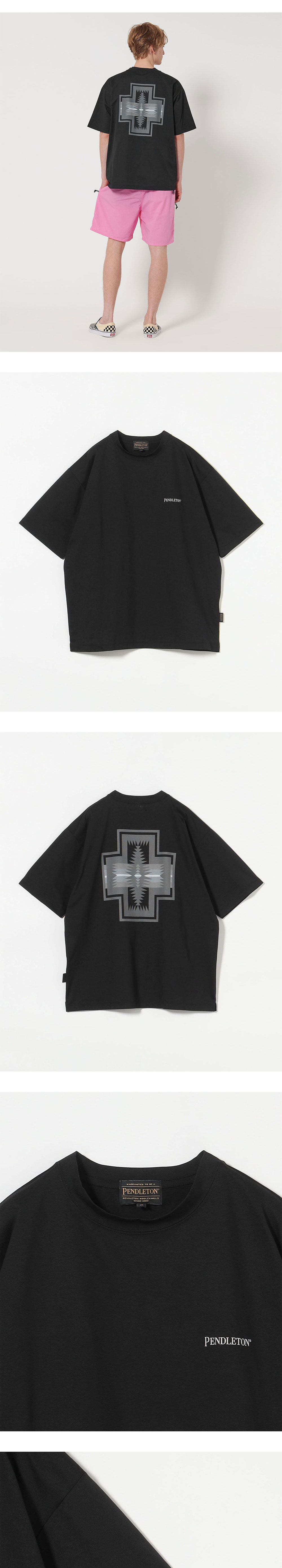 후면의 프린팅 디자인이 인상적인 캘리포니아 제너럴 스토어 x 펜들턴의 프린트 티셔츠 블랙입니다. -가볍고 건조한 촉감으로 우수한 착용감 -소매 set-in 디자인 -전면 PENDLETON 로고 포인트