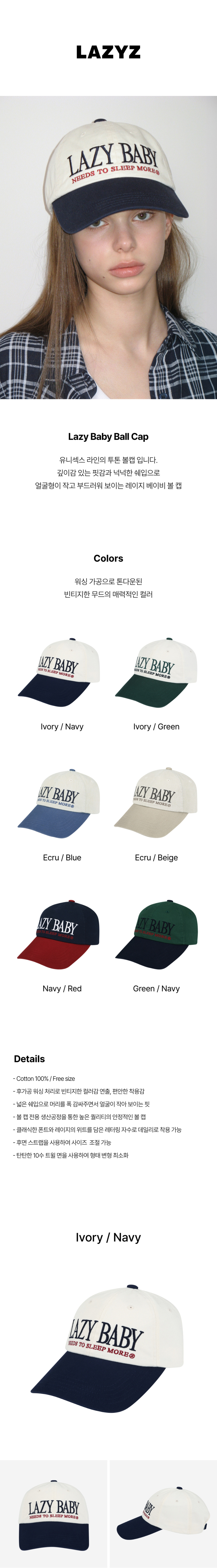 레이지지 90s 레이지 베이비 볼캡 아이보리/네이비