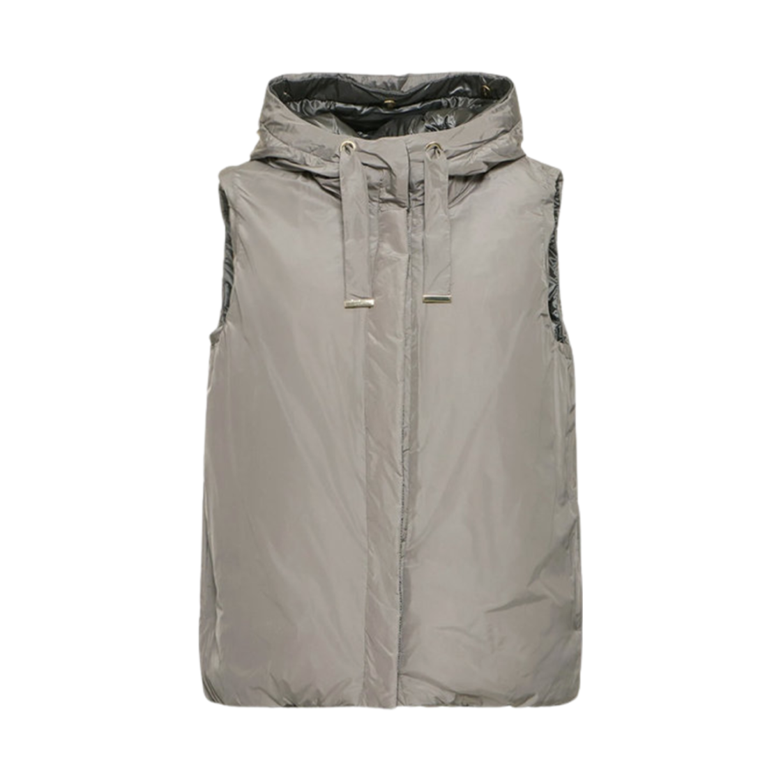 (W) Max Mara The Cube Jsoft Reversible Hooded Padding Vest Dark Greige