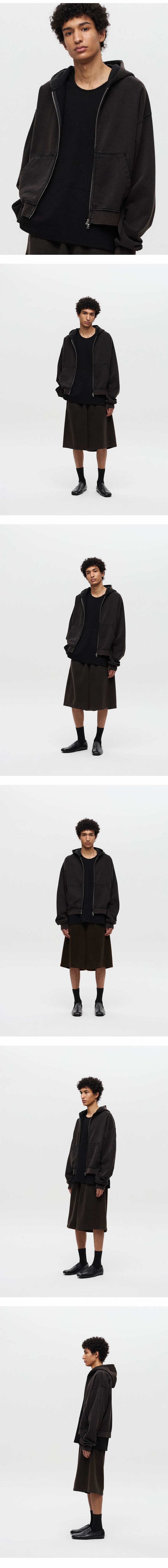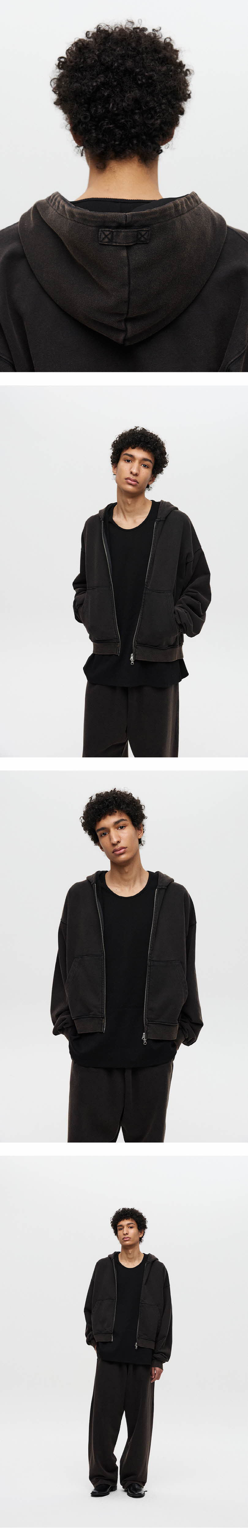 디파인 페이드 워싱 크롭 후드집업 블랙