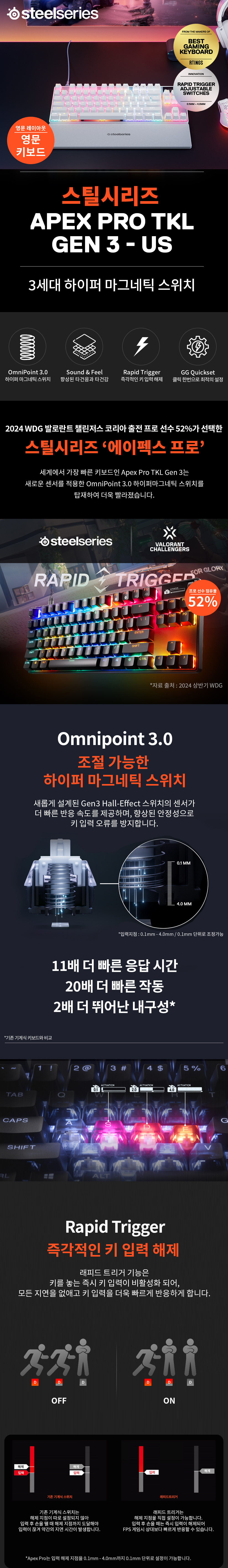 스틸시리즈 Apex Pro TKL Gen 3 White US 자석축 기계식 게이밍 키보드